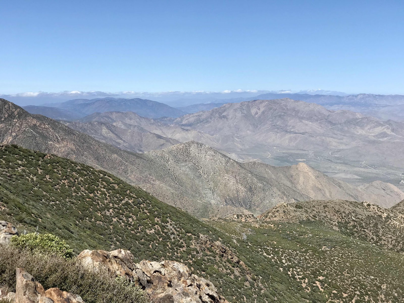 All morning and afternoon we hiked along the ridge at the edge of the Laguna escarpment with fantastic views down to the desert. We covered just under 10 miles to the Penny Pines trailhead, where there is a popular trail to the top of Garnet Mountain. This was the only day hike we did all winter that had us anywhere near the PCT, and the two trails only share a few miles. We had arranged for my sister May to pick us up here. Her and her kids walked a little way down the trail and found us and walked the last little bit with us. They we’re happy to be breaking out of house arrest and came bearing gifts of food! We had the pleasure of enjoying cold flavored sparkling water, fresh fruit and some extra bars. On the trail we miss fresh fruits and veggies more than anything and it’s what we crave when returning to civilization!